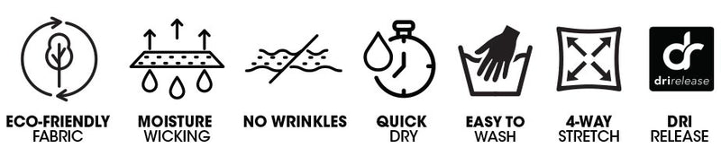 • 100% polyester. The fabric is breathable and wicking, but nice and resistant to hold up on the trails.
